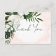 Diese Hochzeit danke Ihnen Karte Design bietet schöne, üppige tropische Vegetation und weiße Blumen auf einem weichen pfirsichblütigen Aquarell Hintergrund. Ideal für die Ziel- oder Strandhochzeit. Verwenden Sie die mitgelieferte Nachricht oder fügen Sie Ihre eigene hinzu. Erstellt von der einfachen Farmhouse Press.