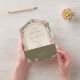 Diese bohische tropische botanische | grünes Siegel und senden Sie alles in einer Einladung ist perfekt für Ihre elegante rustikale Blumen, Grün, Pfirsich, Rose Gold Hochzeit. Das Design besticht durch einen goldenen Rahmen oder ein Bouquet mit modernen, rosafarbenen Pampasgras, einfachem Salbei, Elfenbein, Champagner-Palmenblättern und klassischem Strandgrün. Die Blume können rosa Rose und Orchideen enthalten. Das Design ist ideal für eine Vintage Terrakotta, Beige, Rost, Winter, Frühling, Hochzeit im Herbst. In der Erholung der Kollektion finden Sie weitere passende oder koordinierende Hochzeitsbücher.