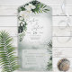 MIT ODER OHNE ABENDESSEN. AUCH MIT EINEM QR-CODE IM UAWG BEREICH VERFÜGBAR. Dieses Design besticht durch eine wunderschöne tropische Vegetation und weiße Blumen auf einem sanften grünen Aquarell. Ideal für die Ziel- oder Strandhochzeit. Erstellt von der einfachen Farmhouse Press.