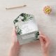 VERFÜGBAR MIT ODER OHNE ABENDESOPTIONEN ANSTELLE EINES QR CODES. Dieses Design besticht durch eine wunderschöne tropische Vegetation und weiße Blumen auf einem sanften grünen Aquarell. Ideal für die Ziel- oder Strandhochzeit. Erstellt von der einfachen Farmhouse Press.