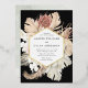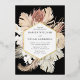 Moderne tropische Hochzeitseinladungen mit Ihren Namen in einem geometrischen Rahmen aus Goldfolie mit dunklem Holzkohlehintergrund. Tropische Blume und Blattwerk umschließen das Ganze in erdigen Cremes-, Bräunungs-, Beige-, Rost-, Braun- und Salbeigrün-Tönen. Die tropischen Boho Hochzeitseinladungen kehren zu einem hellgrünen Aquarell-Hintergrund zurück.
