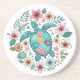 Boho Turquoise Floral Sea Turtle - Coastal Round Getränkeuntersetzer