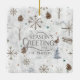 Ein bohes Aquarellmuster mit Schneeflocken aus Zweigen, Baumzweigen, Stämmen und Pinecones, eingebettet in Schneeflöße. Dieses rustikale Muster hat eine warme, nieder-Zuhause-Weihnachtsansicht. Dieses Dekor ist in einer natürlichen bohfarbigen Palette erhältlich und weist Brauntöne, Beige und Stahlblau auf. Wir haben einen optionalen Text "Die Grüße der Jahreszeit" zur Verfügung gestellt und Sie können diesen mit Ihrem Namen und Datum personalisieren. Durchsuchen Sie ID986 um alle Produkte zu sehen, die mit diesem bezaubernden Weihnachtsmuster koordinieren.