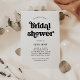 Diese einfache, bohmige, schwarz-weiße Brautdusche mit Retro-Typografie auf weißem Hintergrund.
