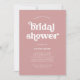 Diese schlichte und boho Brautdusche mit weißer Retro-Typografie auf einem staubigen, rosa Rose-Hintergrund.