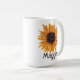 Sweet Boho LINKS Handed Designed Sunflower Tasse mit 2-seitigen Druck (Haupt-Sonnenblumendesign Gesichter aus) in zwei Größen ... 11oz und 15 oz!! Personalisieren Sie Ihren Namen mit unserem einfachen Online-Editor!