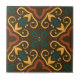 Lebhaftes Keramik Kacheldesign mit einem nahtlosen Muster aus Ornamenten in Erdfarben.