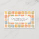 Elegant, modern business card featuring a watercolor square tile pattern in earthy pastel tones, including warm yellow, muted terracotta, sage green, and dusty blue. Designed to balance style and clarity, it’s perfect for pottery and ceramic artists, interior designers, home decor shops, handmade brands, boutique studios, and artisan makers seeking a polished, cohesive brand presence.