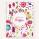 Ein hübscher Kranz mit farbenfrohen Aquarellfarben-Blume rund um Ihren Text. Ändern Sie die Formulierung, um sie anzupassen. Die Rückseite weist ein Blumenmuster auf, das mit dem anderen übereinstimmt. Der perfekte Ort, um Ihre Lieblingsrezepte aus der Familie zu sammeln. Ein hübsches Geschenk für einen Sohn oder eine Tochter, der Uni oder verlassend Zuhause beginnt.