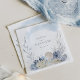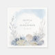 Diese lieblichen, ätherischen, küsteneleganten, ozeanischen, staubblauen Hochzeitsservietten sind perfekt für sommerliche Strandhochzeiten mit einer Vielzahl von zarten Wasserfarben-Korallen, Seesternen und Muscheln.