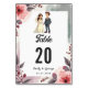 Diese elegante, Aquarellblütenhochzeit-Tischnummer eignet sich ideal für eine moderne Hochzeit. Das romantische Design besticht durch einen eleganten, floralen Aquarellrahmen mit einer Braut- und Bräutigrade und einer schwarzen Kalligraphie auf weißem Hintergrund.