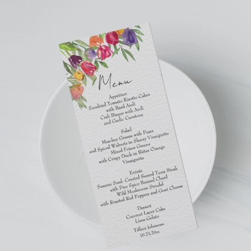 Boho Wasserfarbene Tulips und Grünpflanzen Platzkarte