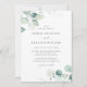 Individuelle Hochzeitseinladung. Es zeigt Aquarellbilder von Eukalyptus-Blätter und Blüten. Personalisieren Sie diese grüne Hochzeitseinladung durch Hinzufügen Ihrer Hochzeitsdetails. Diese Aquarellmühle Eukalyptus Hochzeitseinladung ist ideal für Frühjahrshochzeiten, Winterhochzeiten und Hochzeiten.