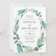 Boho Thema Hochzeit Einladungen, ideal für Sommerhochzeiten. Freuen Sie sich auf die individuell gestaltete, grüne Einladung. Es zeigt Aquarellbilder von Grünpflanzen, Farnen, Eukalyptus und Sukkulenten mit passendem Muster. Personalisieren Sie diese durch Hinzufügen von Namen, Datum, Uhrzeit, Ort und anderen Details.