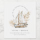 Boho Watercolor Palm Sailboat Seascape Wedding Weinetikett
