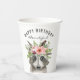 Boho Watercolor Raccoon Happy Birthday Pappbecher