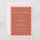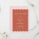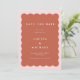 Eine moderne und stilvolle Hochzeit bewahrt die Datumsanzeige mit einer gewölbten Jakobsform in Terrakotta mit einem rot-rosa Rand und weißem Schriftart. Fügen Sie Ihre Hochzeitswebsite und QR-Code auf der Rückseite.