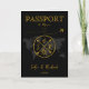 Modern Boho World Map Einladung Wedding Destination, wie Pass, mit Ihrem Monogramm. Fügen Sie Ihren QR-Code hinzu. Schwarze Hintergrundfarbe