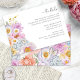 Boho Wedding Details Umschließungskarte. Teilen Sie wichtige Informationen über den Hochzeitstag stilvoll mit dieser feinen und schönen horizontalen Detailkarte, die sich perfekt für Frühlings-, Sommer- oder auch Kakteen-Herbstfeiern eignet. Ein lebendiger, seitlicher Blumenstrauß mit Aquarellfarben - wie z.B. Blüten- und Fuchsienbäume, goldgelbe und orangefarbene Akzente, lila Lavendel-Rose, blaues Delphinium, fröhliche Gänge, Wildblumen und ein zarter Schmetterling - verleiht den Details eine fröhliche Farbe. Der Rücken weist ein koordinierendes Blumenmuster auf, das einen zusammenhängenden und polierten Look schafft. Erhöhen Sie Ihre Einladungs-Suite mit einem so praktischen wie atemberaubenden Design - bringen Sie Ihre Details mit persönlicher Touch zum Leben.