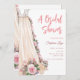 Mit einem wunderschönen Hochzeitskleid in Aquarellfarben und einem Rosenbukett in Aquarellfarbe lädt diese boho Braudusche Ihre Gäste und Sets zu einer angenehmen Veranstaltung ein. Ideal für Blütenblätter und Prosecco, Brunch oder Tee, diese Einladung wird Ihnen bestimmt gefallen.