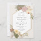 Diese Einladung hat bohemianische inspirierte Aquarellmerkmale, wie Pampasgras, Orchideen, Palmen-Blätter, Anthurium und Protea-Blume in einer neutralen Palette. Es hat ein weißes Sechseck mit einem simulierten Goldrahmen. Der Hintergrund hinter der Form kann geändert oder gelöscht werden, wenn Sie weiß gewollt haben. Die Kopie ist bearbeitbar und der Schriftart kann geändert werden. Die Karte hat einen farbigen Hintergrund, etwas dunkler als die Vorderseite. Sie können die hintere Farbe ändern.