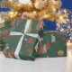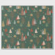 Es ist ein Muster, das sich durch Weihnachtsbäume, Dekorationen und Schneeflocken hervorhebt.