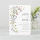 Boho Whimsical Wildblume Sage Greenery Botanische Elegant Simple Garden Hochzeit Save the Date Einladung. Bohemische Wildblume Bouquet minimalistisch Einladung mit eleganten und schlichten boho Wiese Blütenpflanzenblättern in handgedruckter Wasserfarbe. Die schöne grüne Hintergrundfarbe ist für Hochzeiten und Hochzeiten im Grünen wunderschön. Einladungen für Frühjahr, Sommer, Herbst und Winterhochzeiten.