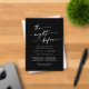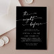Die helle Schwarz-Nacht vor der Probe-Acryl-Dinner Einladung ist perfekt für eine minimalistische Nacht vor der Hochzeit Probe. Das moderne böhmische Design besticht durch einfache rustikale Kalligraphie mit einem einzigartigen und dennoch klassischen Stil. Perfekt für jede Jahreszeit: Frühling, Sommer, Herbst oder Winter.