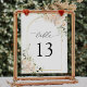 Boho Cream White Rose Blumenstuhl Grüne botanische Gold Arch Elegante Hochzeit Tischnummer. Bohemischer, weißer Rosenstuhl mit goldgelbem Bogen-Tischnummer-Schablone aus Imitaten mit eleganten und cremefarbenen Blumen und grünen Botanicals in handgedruckter Aquarell. Der türkisgrüne Aquarell ist ideal für romantische Hochzeiten und Hochzeiten mit weißem Blumen. Einfache, druckbare Vorlage für Frühjahr, Sommer, Herbst (Herbst) und Winterhochzeiten.