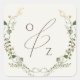 Boho Wildblume BeigeMonogram Wreath Umschlag Aufkl Quadratischer Aufkleber