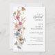 Erdig-boho Wildblume Braudusche mit einer hübschen Aquarellbilder von Wildblumen in Rose Rosa, Blau und hellen Terrakottönen. Pastel Lavendelhintergrund auf der Rückseite mit einem Blumenmuster-Overlay.