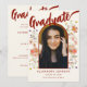 Feiern Sie den Uni-Abschluß Ihrer Tochter mit einer schönen Foto-Announcement-Karte. Markieren Sie den Abschluss Ihrer Tochter mit dieser Announcement Card für moderne Script Calligraphy Abschluss Foto, mit der Sie den Geist der Veranstaltung erfassen können. Mit seiner eleganten, orangefarbenen Kalligraphie und dem skurrilen Bogen der Aquarell-Wildblume strahlt diese Karte Wärme und Charme aus. Die Vorderseite zeigt den Namen und den Abschluss Ihrer Tochter in gebrannter Schriftzeichen-Typografie auf einem weichen beigen Hintergrund, während der Hintergrund zusätzliche Informationen in der modernen Kalligrafie hervorhebt. Diese Karte enthält eine leicht zu bedienende Fotovorlage, die es Ihnen ermöglicht, sie mit einem hochgeschätzten Foto Ihres Absolventen zu personalisieren, sodass sie einzigartig ist. Einzigartiges Originalwerk und Design der Künstlerin Catherine Sweetman, diese Karte ist eine atemberaubende Möglichkeit, um ihre Uni zu gedenken und den fröhlichen Anlass mit Freunden und Familie zu teilen.