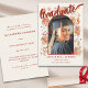 Feiern Sie den Uni-Abschluß Ihrer Tochter mit einer schönen Foto-Announcement-Karte. Markieren Sie den Abschluss Ihrer Tochter mit dieser Announcement Card für moderne Script Calligraphy Abschluss Foto, mit der Sie den Geist der Veranstaltung erfassen können. Mit seiner eleganten, orangefarbenen Kalligraphie und dem skurrilen Bogen der Aquarell-Wildblume strahlt diese Karte Wärme und Charme aus. Die Vorderseite zeigt den Namen und den Abschluss Ihrer Tochter in gebrannter Schriftzeichen-Typografie auf einem weichen beigen Hintergrund, während der Hintergrund zusätzliche Informationen in der modernen Kalligrafie hervorhebt. Diese Karte enthält eine leicht zu bedienende Fotovorlage, die es Ihnen ermöglicht, sie mit einem hochgeschätzten Foto Ihres Absolventen zu personalisieren, sodass sie einzigartig ist. Einzigartiges Originalwerk und Design der Künstlerin Catherine Sweetman, diese Karte ist eine atemberaubende Möglichkeit, um ihre Uni zu gedenken und den fröhlichen Anlass mit Freunden und Familie zu teilen.