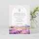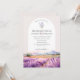 Boho Hochzeit in Urlaubsort Wildblume Einladung, Aquarellbild / Gemälde mit violetten Lavendelfeldern in der Provence, Frankreich