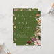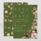Boho Wildblume Rustic Moss Green Save the Date Einladung
