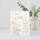 Eine elegante, preisgünstige und leichte Taupe-Girl-Dusche mit "einer kleinen Wildblume ist auf ihrem Weg", geschrieben in moderner grauer Typografie und einem stilvollen Lavendel-lila Schrift, und einem boho-inspiriert Aquarellbukett mit lila, rosa und gelben goldenen Wildblumen.