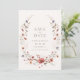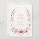Boho Terracotta Burnt Orange Wildblume Elegante Hochzeitseinladung. Bohemische Blumenkranz minimalistisch mit eleganten und schlichten boho Terrakotta-Wildblumen und Botanicals in handgedruckter Wasserfarbe. Die orangefarbene Hintergrundfarbe ist prächtig für Hochzeiten und Hochzeiten im Erdgeschoss. Einfache, druckbare Einladungen für Frühlings-, Sommer-, Herbst- und Winterhochzeiten.