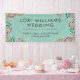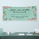 Willkommen Banner für ein Unternehmen in Robin's Eigelb mit modernen Schriftart und farbenfrohen Wildblumen in Rosa, Violett, Orange und Weiß.