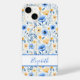 Schönes Muster von Wildblumen in Blues und gelb auf diesem iPhone Gehäuse. Monogramm dieses Handy Gehäuse mit Ihrem Namen oder Initialen.