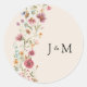 Boho Wildblumen Hochzeit klassische Rundaufkleber. Dieser stilvolle und elegante Hochzeitsaufkleber verfügt über wunderschöne handbemalte Aquarellfarben-Wildblumen. Finden Sie passende Artikel in der Boho Wildblume Dreams Collection.