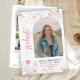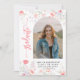 Modern elegant photo girl graduation announcement and party invitation with pastel watercolor wildflowers, chic pink script, and 4 custom pictures.