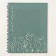 Boho Wildflower Personalized Dusty Blue Green Gift for Her Planner. A calm, elegant planner designed for everyday organization of events, activities, thoughts and creativity. This Dusty blue green spiral planner features delicate hand-drawn floral line art and a personalized name or message on the cover, making it a thoughtful gift for writers, students, creatives, or anyone who loves beautiful stationery. A lovely personalized gift for birthdays, graduations, teachers, or everyday encouragement.