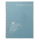 Boho Wildflower Personalized Teal Gift for Her Notebook. A calm, elegant notebook designed for everyday organization and documentation of activities, thoughts and creativity. This navy spiral notebook features a delicate hand-drawn floral line art and a personalized name or message on the cover, making it a thoughtful gift for writers, students, creatives, or anyone who loves beautiful stationery. A lovely personalized gift for birthdays, graduations, teachers, or everyday encouragement.