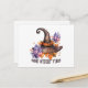 A whimsical boho-style illustration featuring a witch hat adorned with autumn leaves, purple crystals, and soft flowers. The phrase “Boho Witchy Vibes” captures the magical and free-spirited essence of the design, blending mystical charm with bohemian flair.