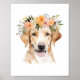 Boho Yellow Labrador Hund Blume Crown Watercolor Poster