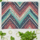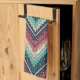 Dieses abstrakte, Zickzack Küchentuch mit kühlem Zickzackhandtuch in einer beeindruckenden Farbpalette aus aquamarin-türkis, korallenrot und cremefarben, kontrastiert mit einem dunkelblauen Hintergrund. Jeder Streifen ist mit vielfältigen Texturen gefüllt - gepunktete, karierte und feste Füllungen - die einen Schichtenreichtum erzeugen, der wie ein Stoff aussieht. Das Design trägt eine böhmische, Stammeskunst und ethnisch inspirierte Ästhetik. Sein kühner, aber vielseitiger Stil verbindet sich gut mit modernen, rustikalen oder eklektischen Designthemen.