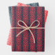 Boho Zickzack Strip in Red and Navy Weihnachten Geschenkpapier Set