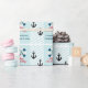 Dieses neue Babygeschenk-Packpapier ist mit einem Seethema entworfen, das eine blaue und weiße Ringboje kennzeichnet, die mit einem kundengerechten Monogramm betont wird. Kundengerechter Text unter der Boje liest: Ahoi! Es ist ein Junge! Der Hintergrund ist ein hellblaues und weißes diagonales Streifenmuster. Dieser einfache und saubere kundengerechte Text der Ausrüstungsbeschreibungen für die Namen der neuen Eltern.