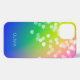 Farbenfrohe Farbenmischung von hellblau, grün, gelb, orange und rosa mit fallenden buh Glitzern in weiß. Personalisieren Sie mit Ihrem Namen oder Initialen in weißen Sans Schriftart Schrift.