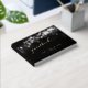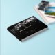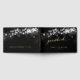 Ein elegantes und raffiniertes Schwarz-Gold-Hochzeitsguestbook mit schwarzem Schwarz-Weiß-Leuchten im Hintergrund mit Goldfolie-Swash-Kalligrafie mit Ihren Namen auf der Vorderseite, Wirbelsäule und Rückseite Covers in einem modernen san Serif-Schriftart. Das Buch liest "Gästebuch" auf der Vorderseite und Hochzeit auf der Rückseite in einem Swash-Schriftart-Skript mit Ihren Namen und Datum.